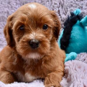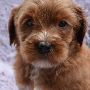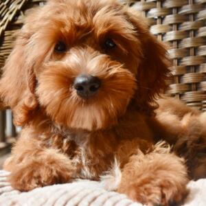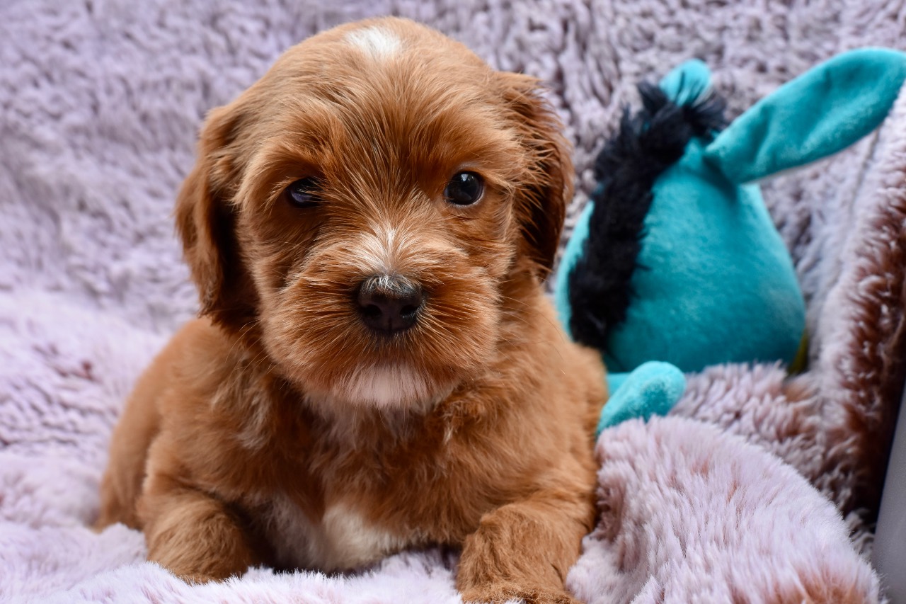 What a gentle soul this fellow is – and life in the Northern Rivers suits him well. He is a gorgeous red colour with a big white flash on his chest. His coat is a relatively straight fleece that has retained a gorgeous depth of colour as we had expected.